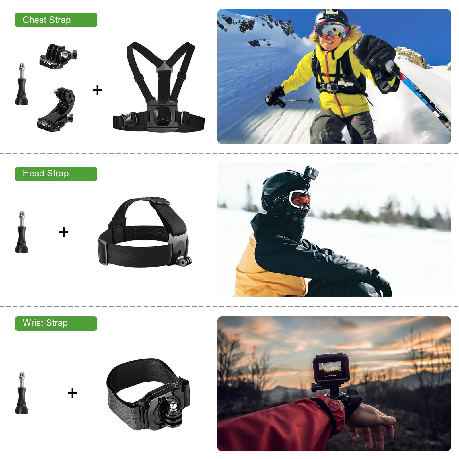 Chest Mount Harness & Head Belt Strap Mount & Wrist Strap Mount: Get the first person point of view videos and photos with our skidproof, elastic, length adjustable, and comfortable wearing.