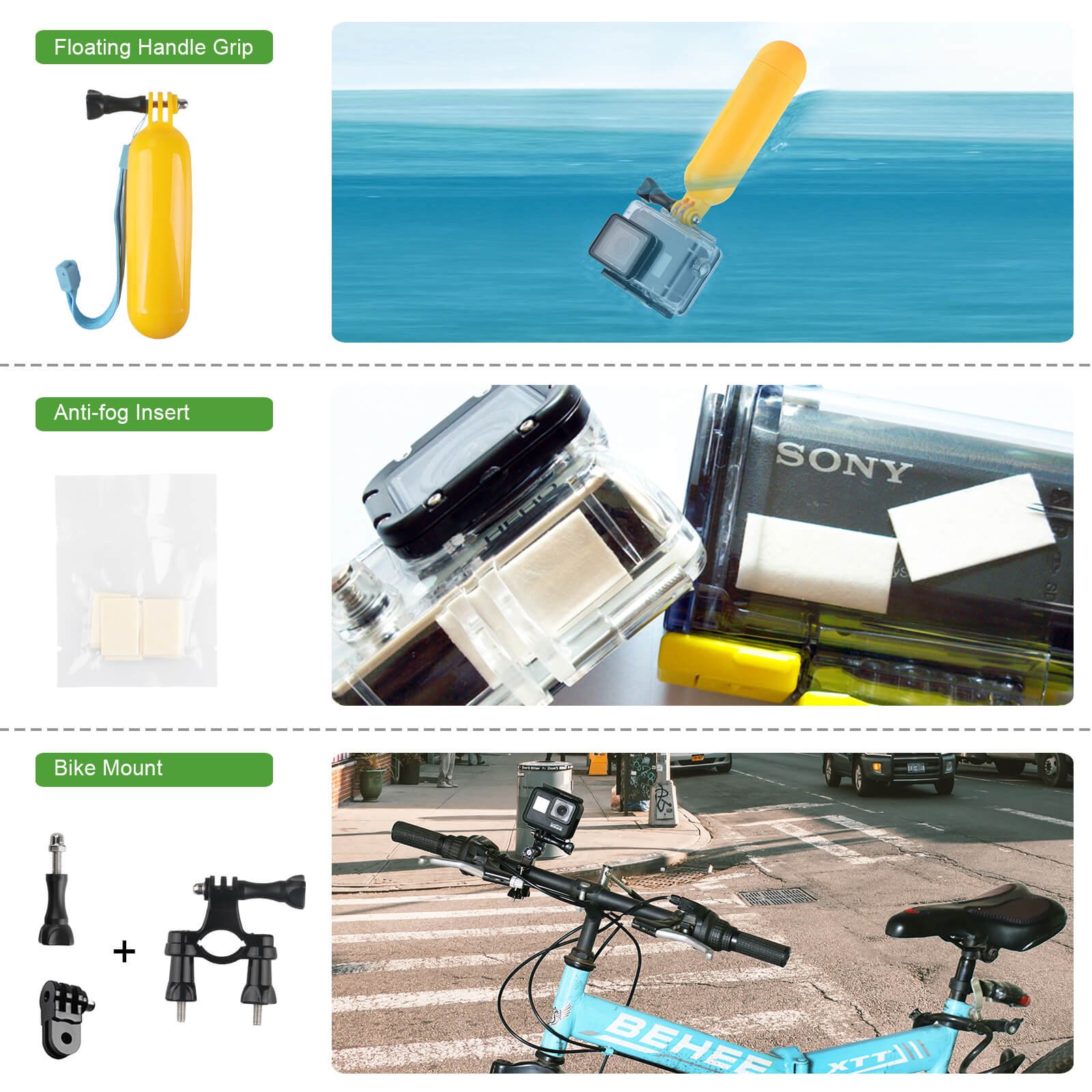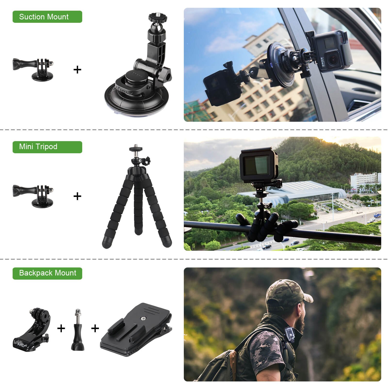 The HSU 60-In-1 Go Pro Accessories Bundle Is Compatible with most action cameras, including HERO 11/10/9/ 8, HERO(2018), HERO 7,6,5 Black,4S, AKASO Brave 7/6/4 EK7000 V50 V50X Campark Dragon Touch REMALI 4K and other action cameras.