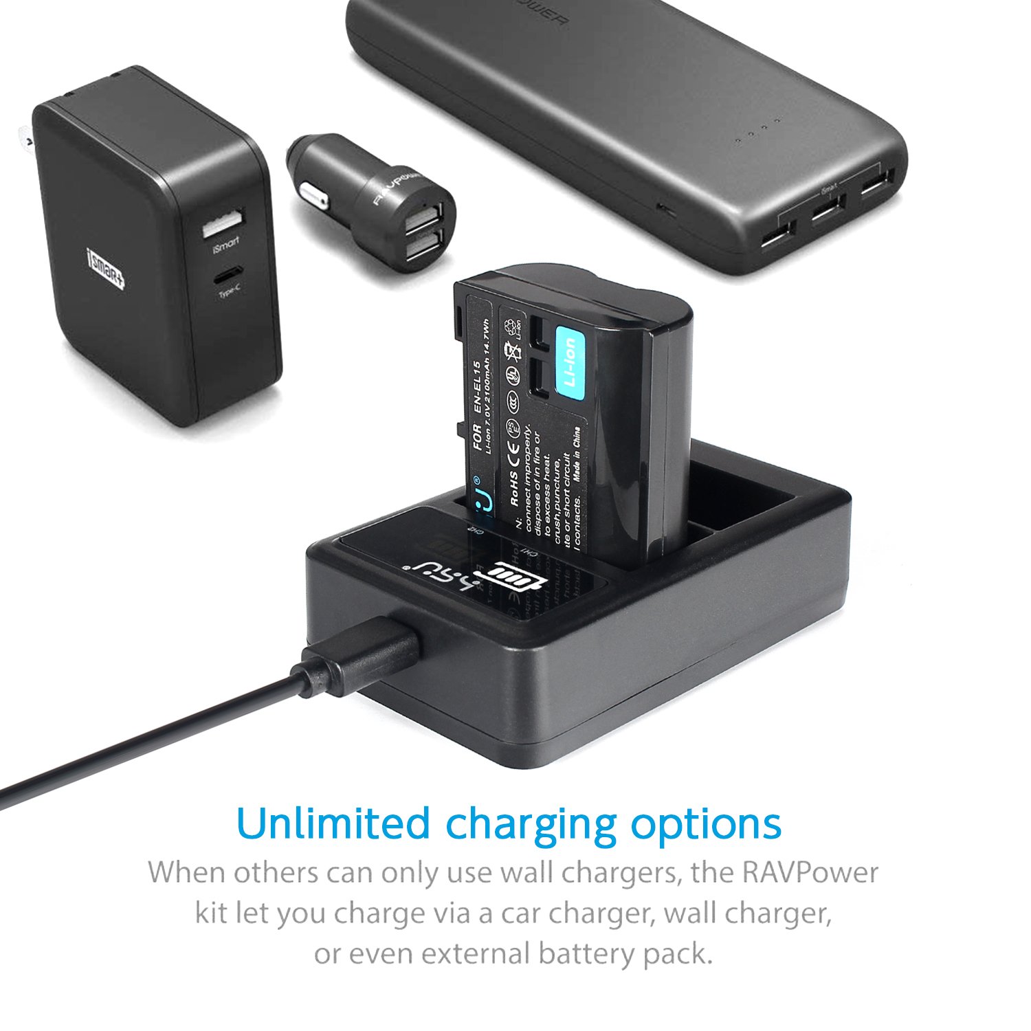 * COMPATIBILITY: EN-EL15 rechargeable batteries for D500, D600, D610, D750, D800, D800e, D810, D810a, D850, D7000, D7100, D7200, D7500 cameras and more.