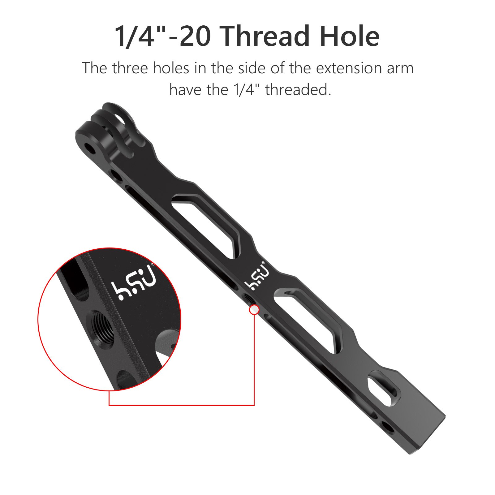 HSU Aluminum Extension Arm, 1/4″- 20 Metal Pole Mount Helmet Stick Extension Arm Mount for GoPro Hero 13 12/11/10/9/8/7/6/5 Black, DJI Osmo Action 4/3 (6.2″)