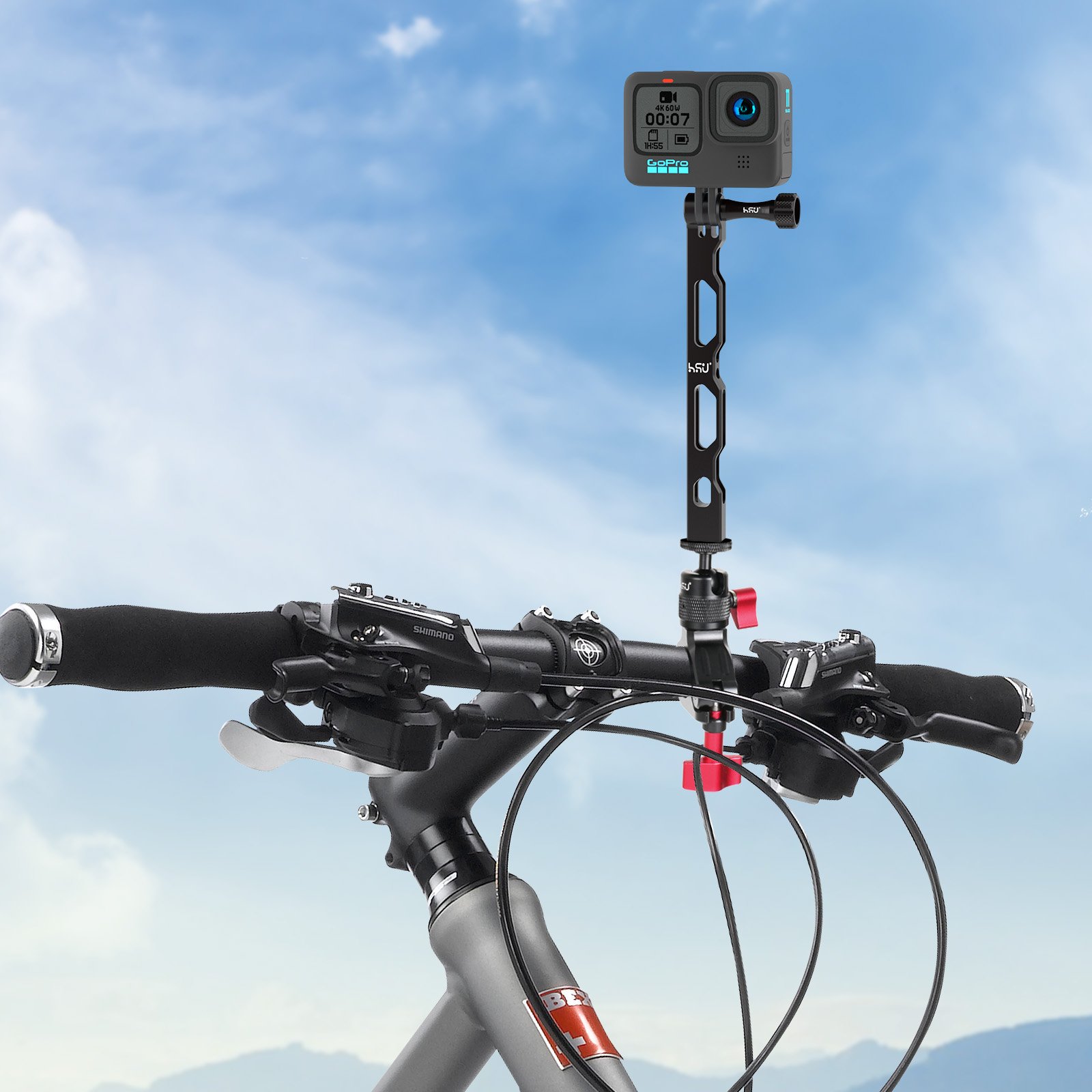 • Hollow Design: This extended mount is possibly to greatly reduce wind resistance during riding and improve the stability of shooting. The end connection of the extension pole bracket with a three-layer design ensures a stable connection.