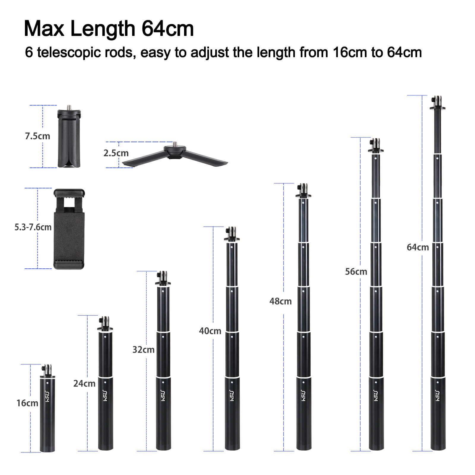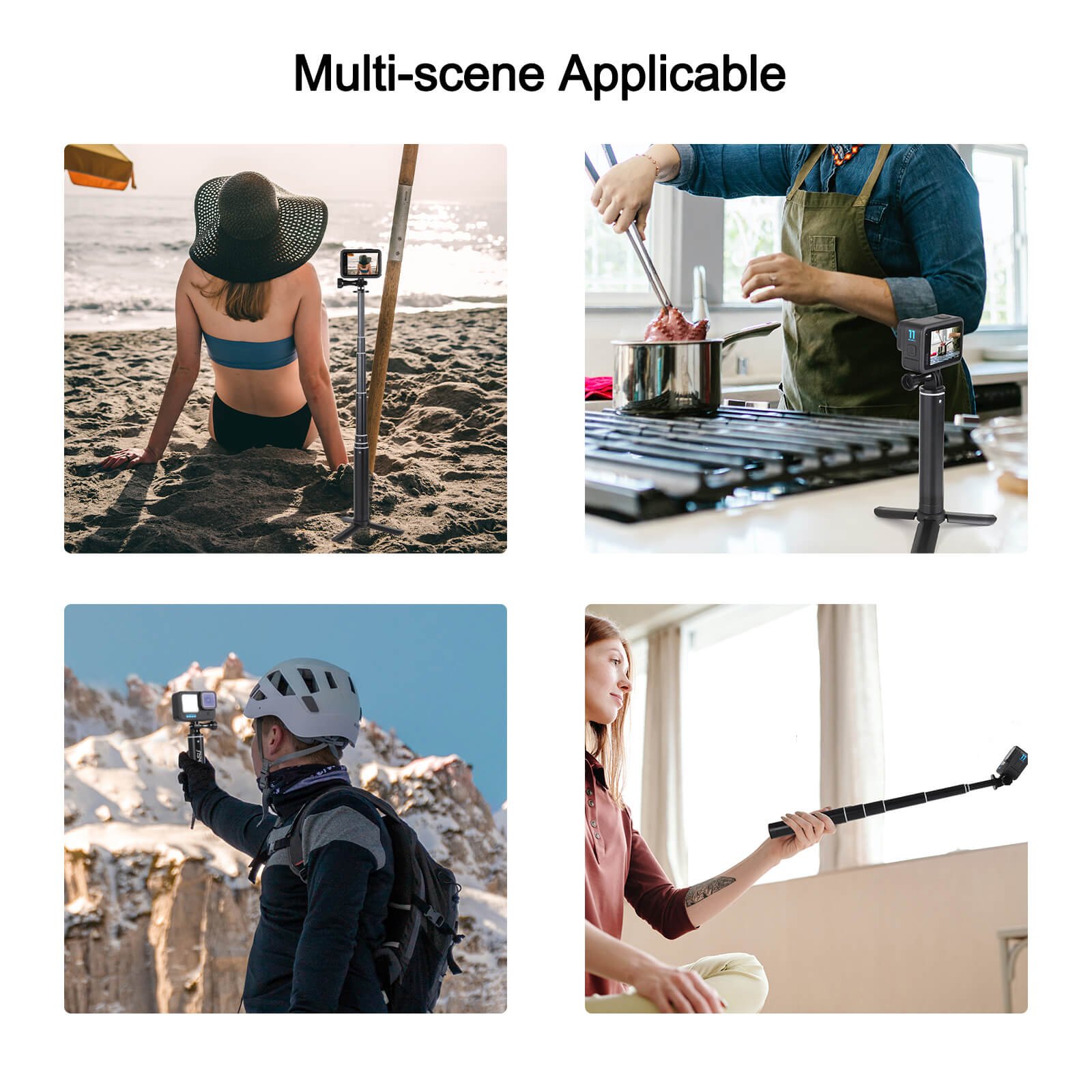 Adjustable Length from 6.3″ to 25.2″: the 6-Section camera mount extension pole is perfect for high-angle photography, and its height can be extended from 6.3″ to 25.2″(16cm to 64cm). Thanks to the telescoping design, you are free to wist the hand-grip to adjust the extension pole length for various scenarios, like group photos, selfies, vlogging, and live-streaming. Also, it is ideal for smartphone vlogging, YouTube, and TikTok videography.