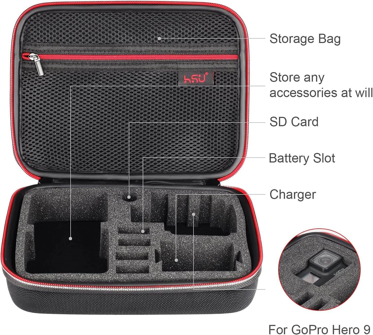 HSU Middle Carrying Case Camera Storage Case for GoPro 11/10/9/8/7