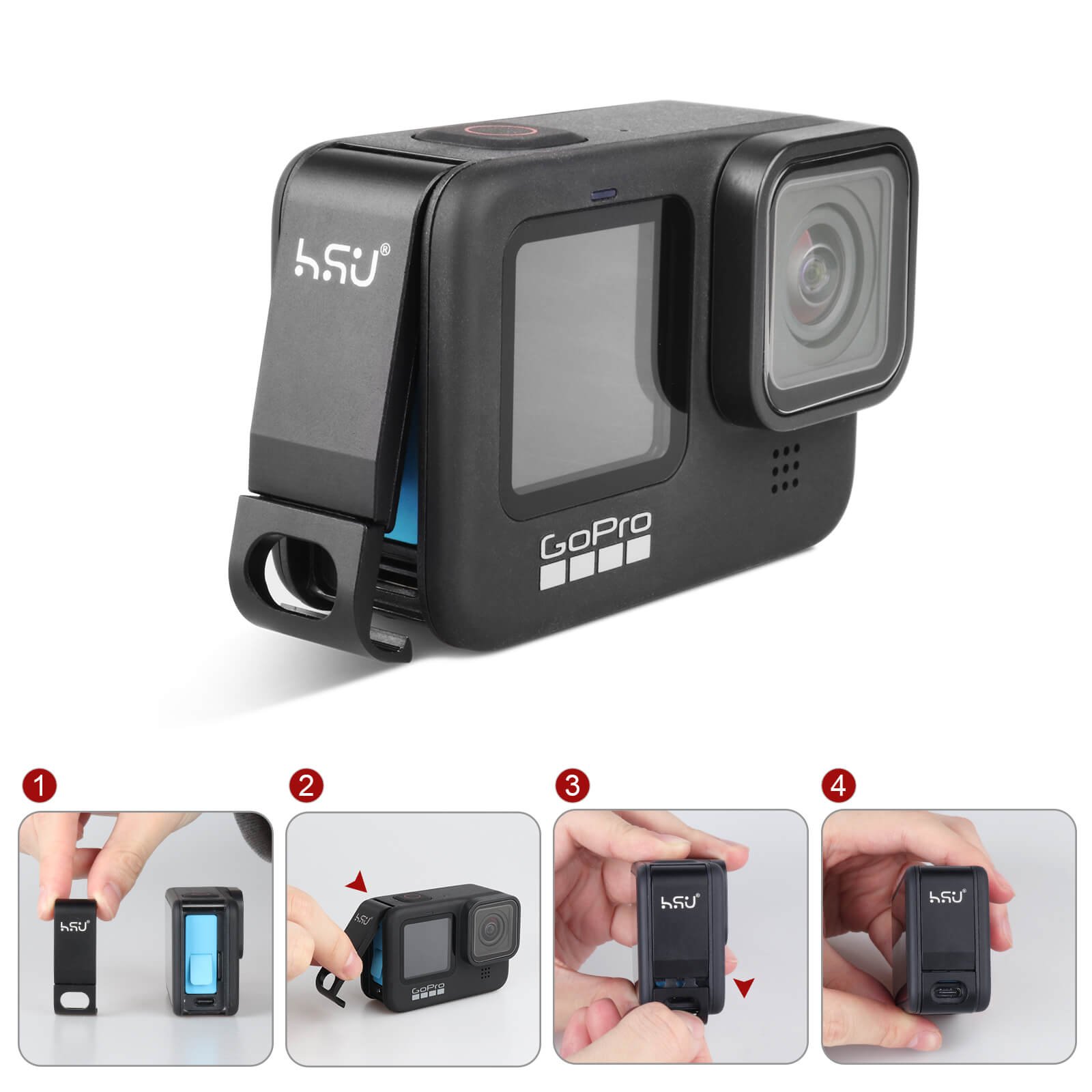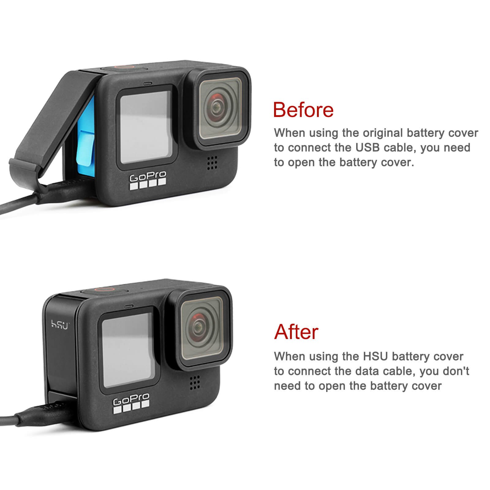 This HSU replacement battery cover is tailored specifically for the Go Pro Hero 9/10/11 Black camera.